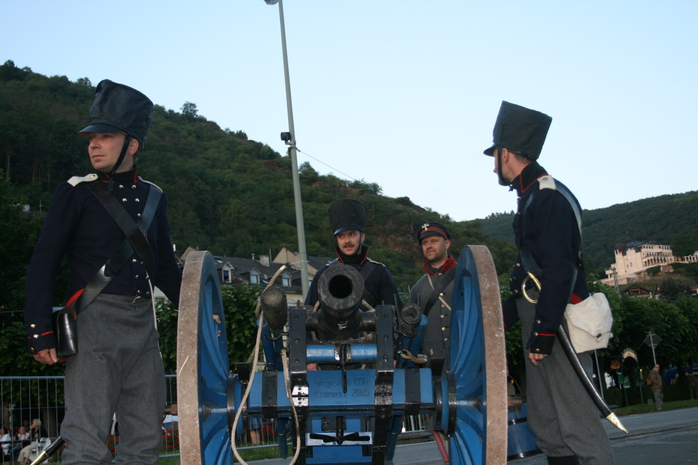 | Im Jahre 1814 und 1815 zeichnete die Batterie sich unter Premierlieutenant z. Neander bei der französichen und belgischen Campagne aus: Laon, Paris, Ligny, und Belle-Alliance (Waterloo). Sie beteiligte sich auch in zahlreichen Gefechten und Belagerungen, wie z.B.: Wittenberg, Thionville, Chalons. |